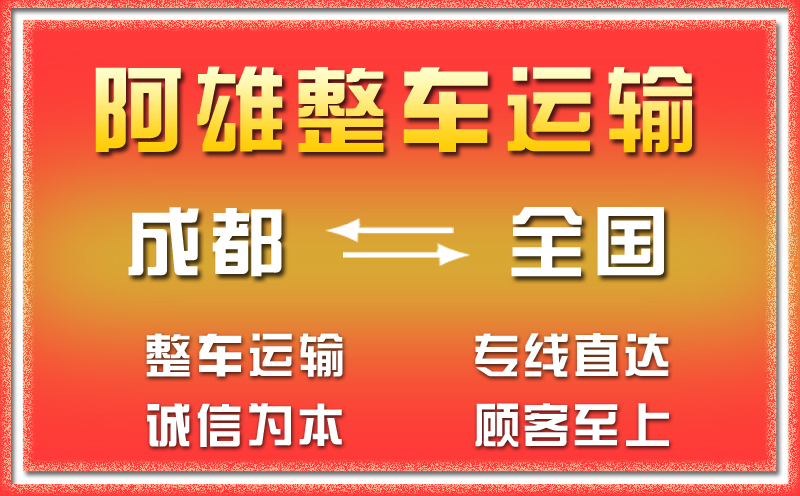 阿雄物流為客戶提供成都發(fā)往全國各地貨運專線,長短途物流運輸、公路運輸、大件運輸、整車零擔、倉儲配送、貨物托運、集裝箱運輸,行李托運、貨物包裝、轎車托運、家電托運、大小貨物的托運等,成都市區(qū)周邊10公里范圍內均可免費安排車輛提貨和派送,物流專線運費優(yōu)惠,運輸時效有保障,全車購買貨物運輸險,以安全、快捷、高效率為服務根本,期待與您長期合作。!